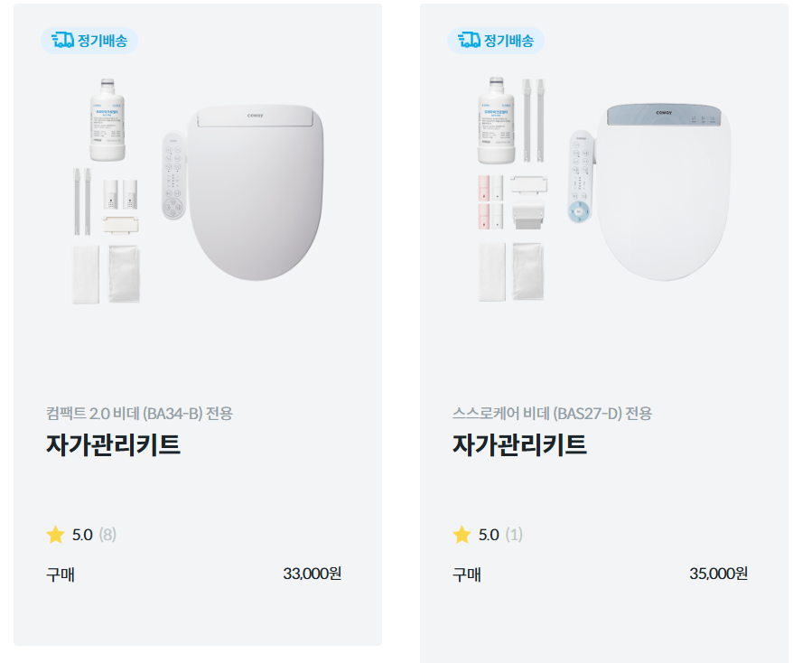 - 코웨이 홈페이지에 있는 자가관리키트를 구매해서 스스로 케어하는 방법도 있어요!